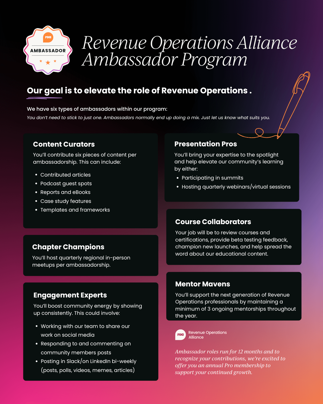 Sounds good so far? Excellent - apply to be an ambassador for Revenue Operations Alliance here. 👇