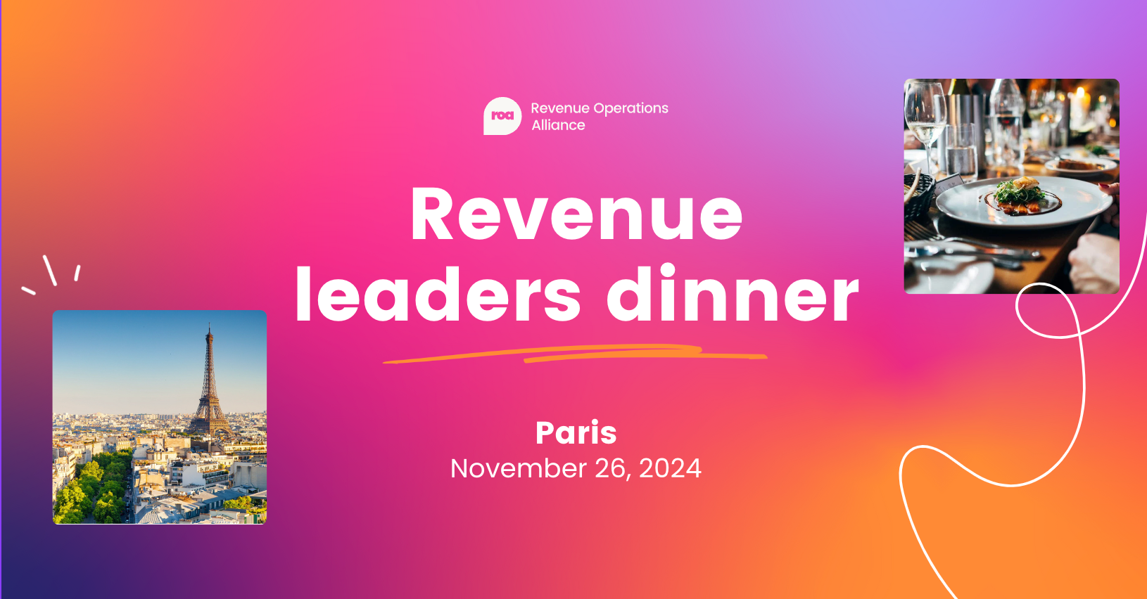 Title: Revenue leaders dinner | Date: November 26 | Location: Restaurant Monsieur Lancaster