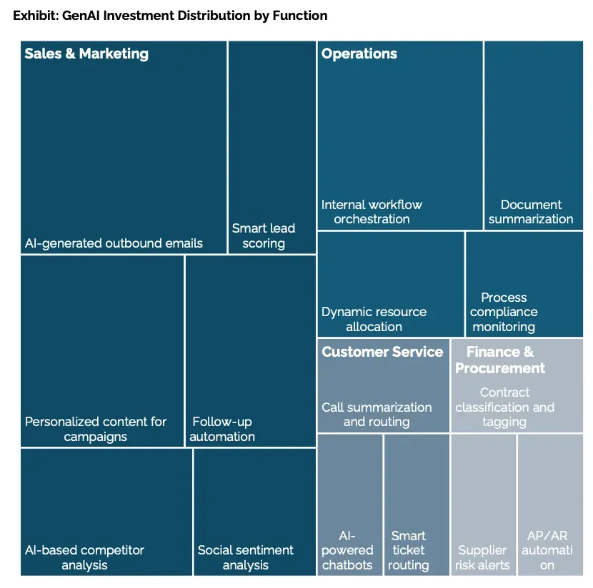 Benchmark your organization by maturity and AI use case adoption. Reach out to your network and see what’s working vs not. Talk to your existing vendors. Develop a sense for standardized workflows you can plug in quickly vs the ones you may need an internal build for.