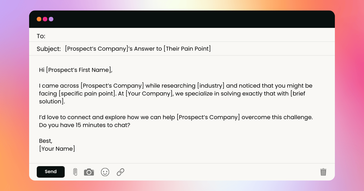 Tip: Keep your video short, around 30–45 seconds, and focus on addressing the prospect’s pain point. Think of it as a friendly “Hey, I’m here to help” message that goes beyond the usual sales pitch.